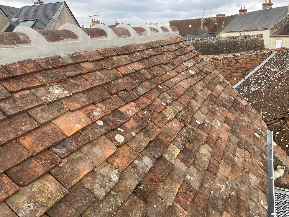 remise en état de cette partie de la toiture en petite tuile du pays avec un faîtage sceller et façonner